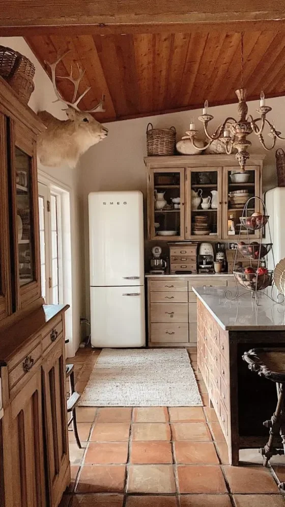 Natural woods finished only with a clear gloss finish bring warmth and coziness to a room. My favorite way this is incorporated into a space is through furniture, like an accent table or dining room chairs.