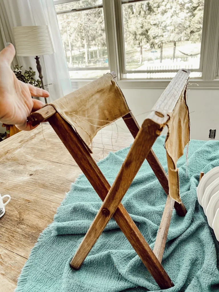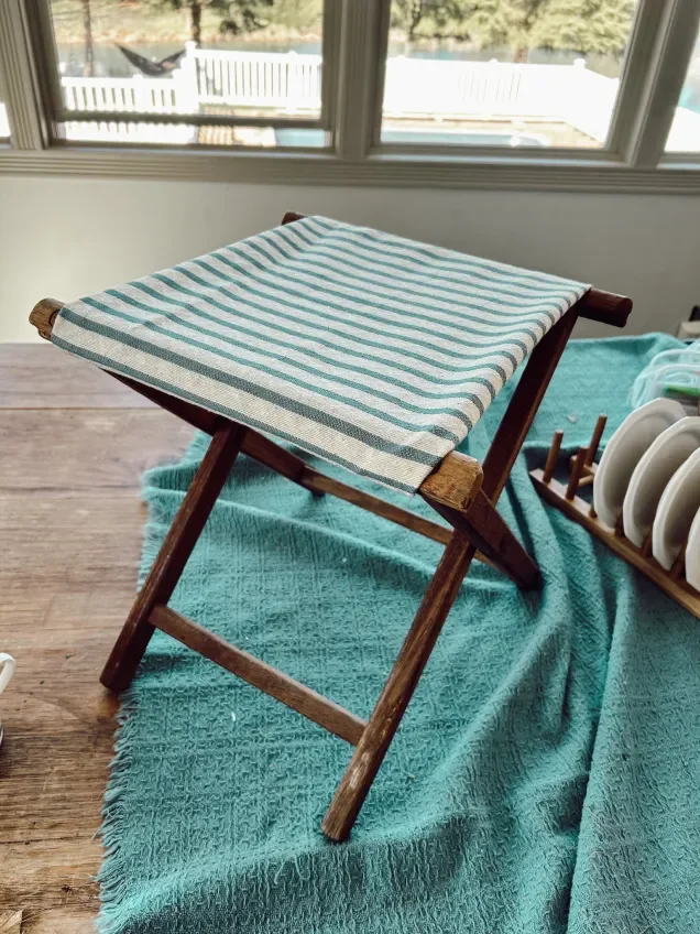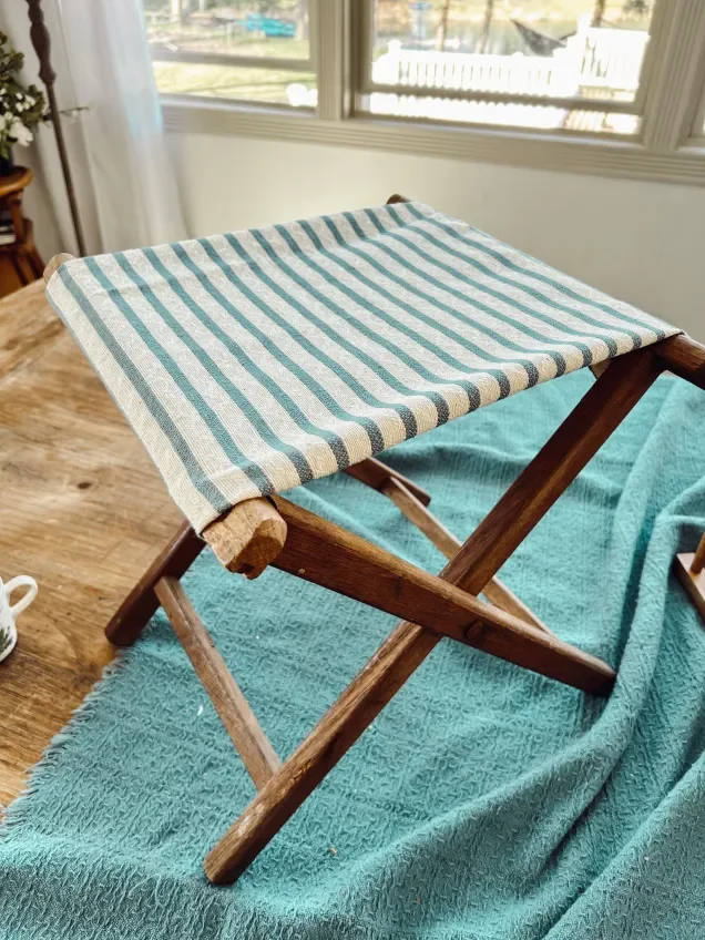 Last week, I found this incredible old stool at the Goodwill Outlet. I think it was a camping stool or something of that sort. But the fabric was so old and brittle, it was already all torn up when I found it. I’m trying to be more intentional with my thrift shopping. Because I’m always preaching to have a plan for your space before you start shopping, and I think that should apply to any thrift shopping I do as well. It’s so easy to get caught up in all the cute vintage items I find. But if I don’t know how I would use something or where I would use it, that should give me reason to pause and really think before I purchase.