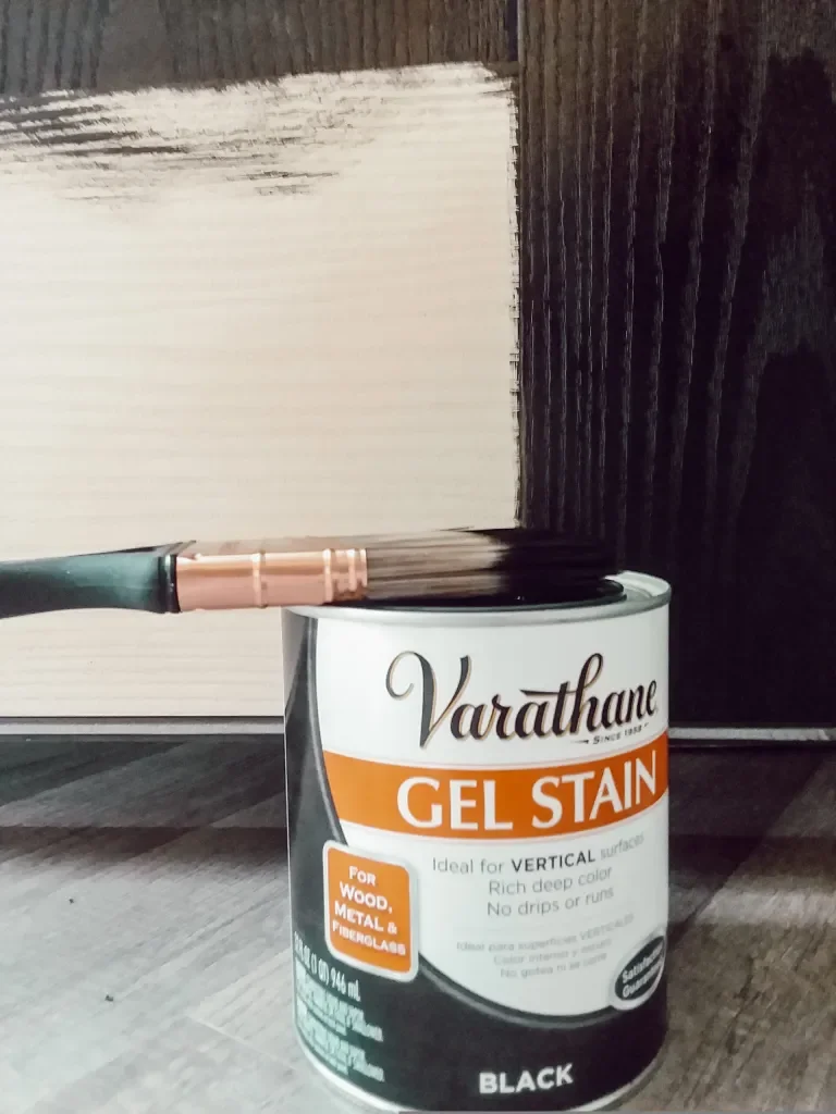 Gel stain is now my preferred method for staining whenever possible! I didn’t have to deal with drips or running. It’s so easy to work with. It dries in 1 hour, and you can apply additional coats in 2 hours. I used Varathane Gel Stain in Black. I bought the qt. and it was more than enough for this job, as well as another larger job I used it for. More about that later. Varathane Gel stains come in 14 different shades on Amazon.